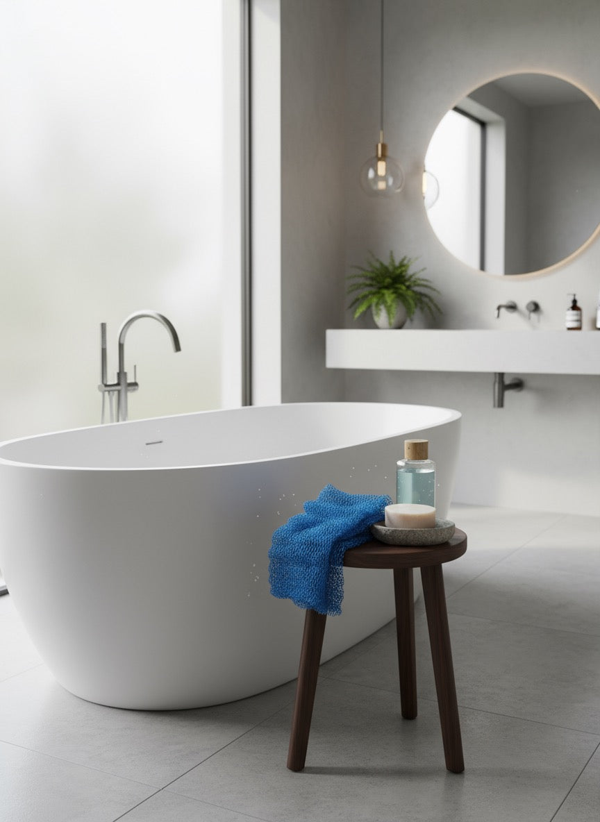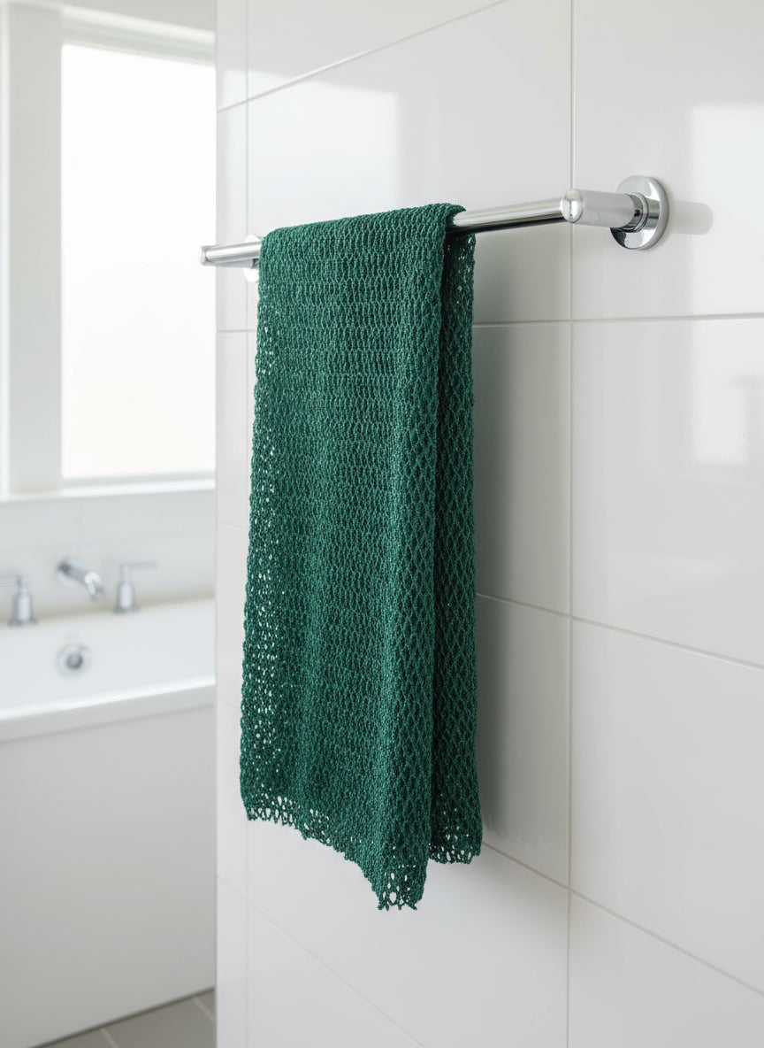Traditional African bath sponge handmade by artisans in Sunyani, Ghana. Creates rich lather with minimal soap or body wash.
